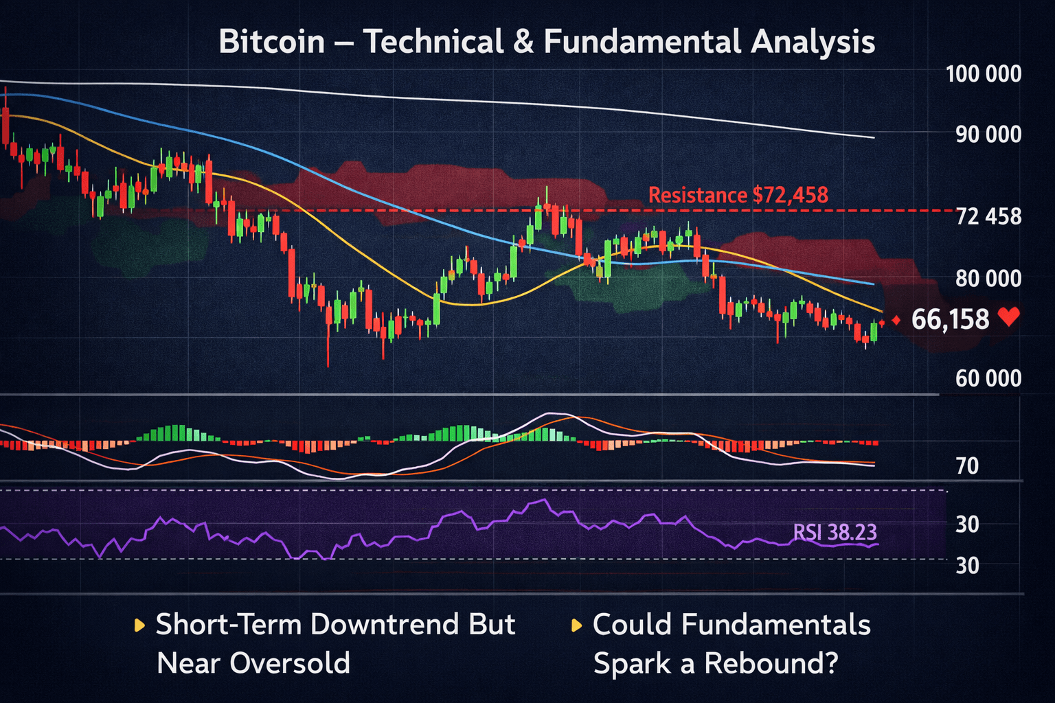 Bitcoin (BTC/USD) is currently trading near $66,158, down approximately 21.9% year-over-year, reflecting sustained selling pressure.