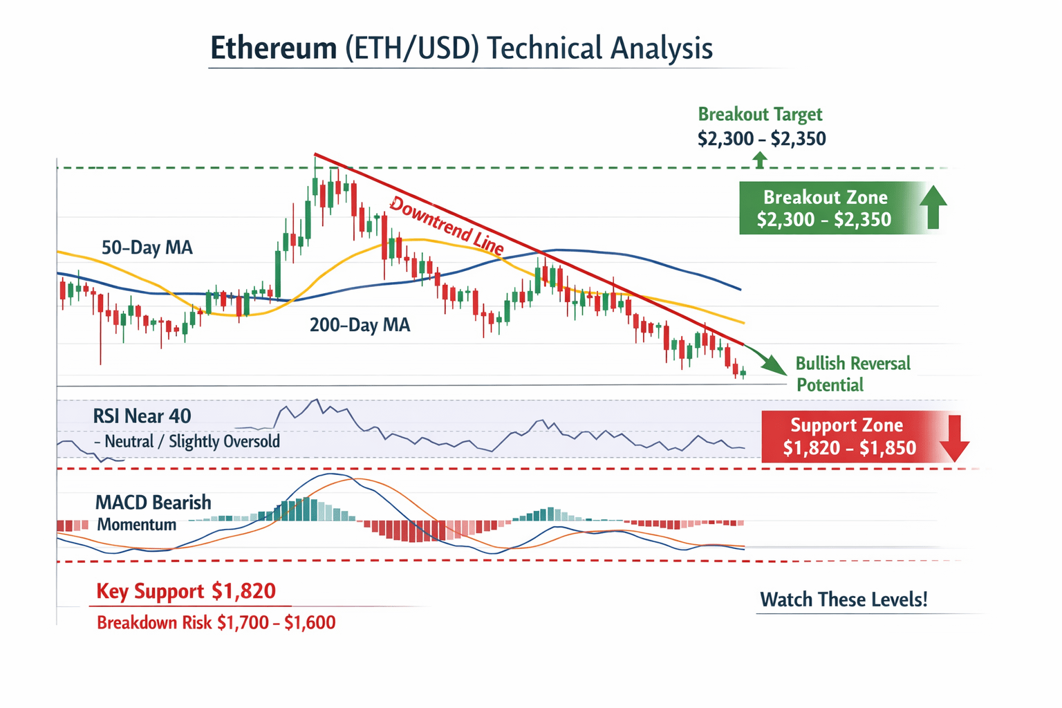 The 50-day moving average (MA50) is still above the current price, reinforcing downside pressure. Until ETH reclaims and holds above this level, sellers remain in control.